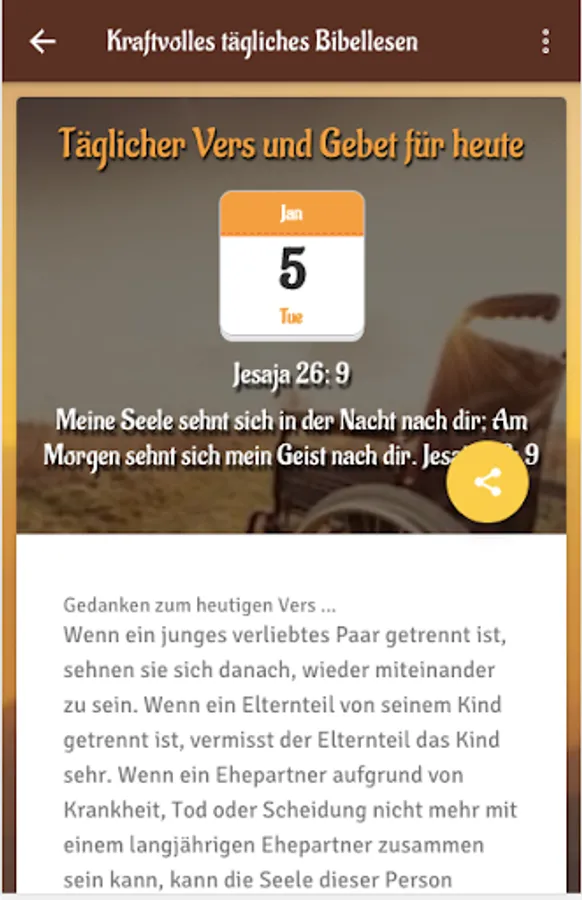 The Daily Prayer and Verse option brings you daily Bible verses and religious inspirational devotions. Receive a morning Bible verse and prayer for each day of the year.