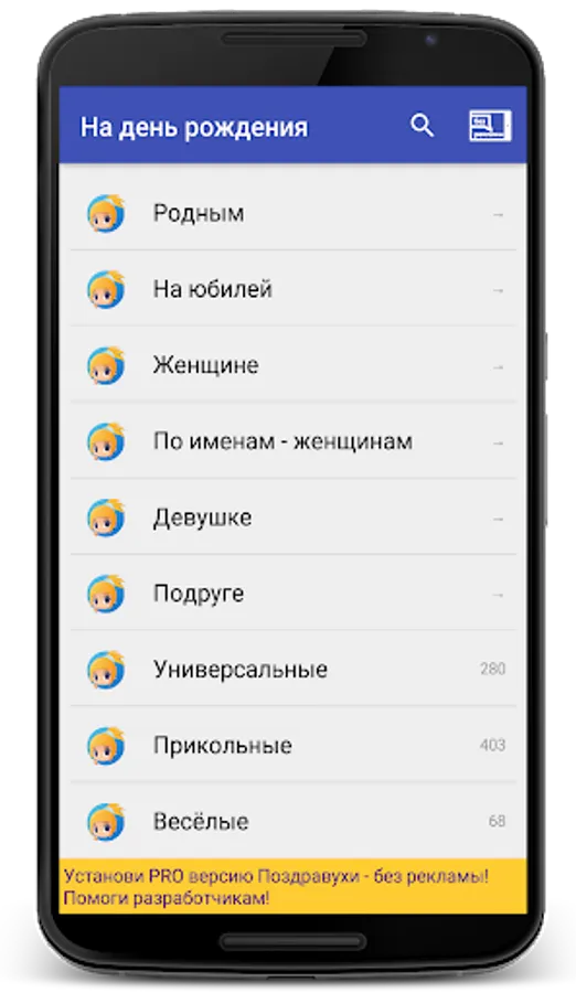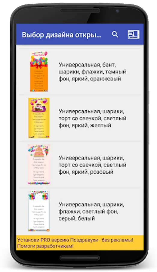 The program contains author's birthday greetings and for all occasions grouped into categories!