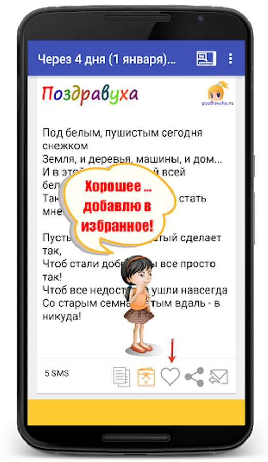 A huge number of congratulatory SMS by sections: sms good morning, sms happy birthday, sms good night, love, miss, beautiful and gentle, sms jokes and tricks, good or sad sms.