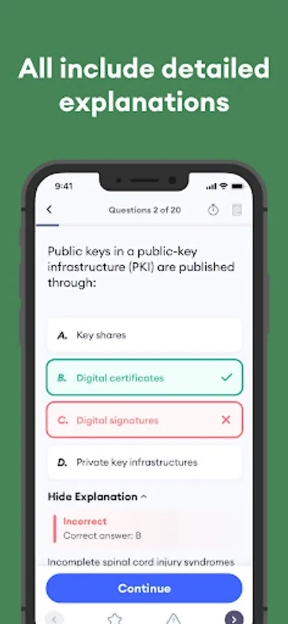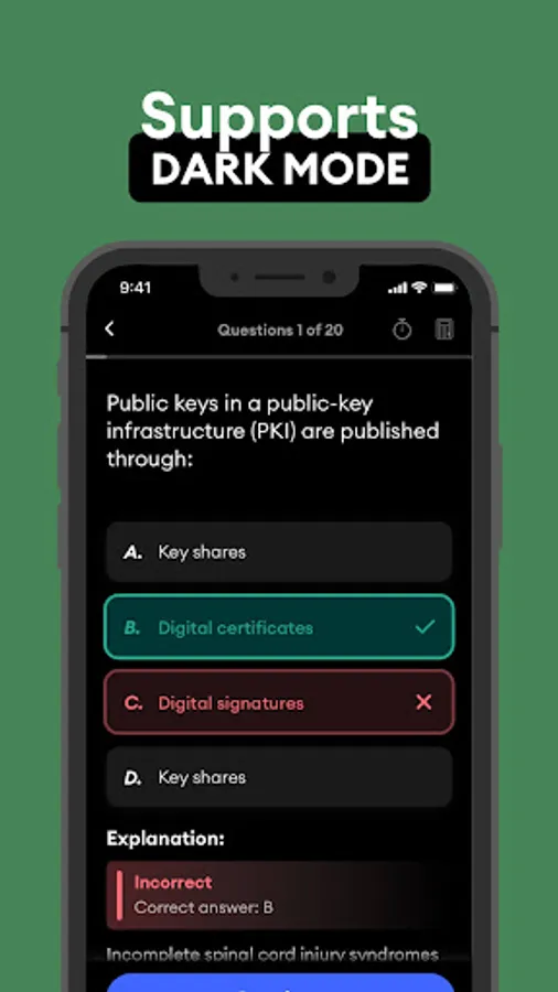 All the features we provide are for your practice or study before the exam only. Your success on these questions or quizzes does NOT necessarily mean that you will pass the certification or that you will perform well on the exam.