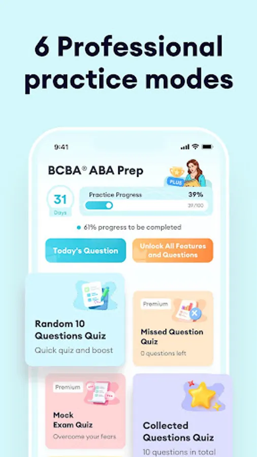 ABA Test Prep 2023 is an application that has been carefully designed and developed by industry exam experts. It has over 800 high quality questions with answer explanations, multiple exam modes and a scientific analysis system to help you practice efficiently anytime, anywhere, giving you a better chance of passing your ABA certification exam on the first try!