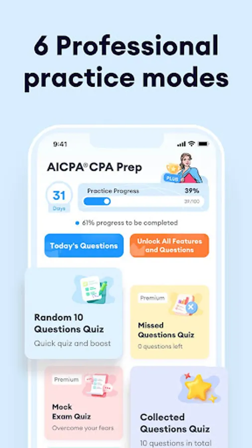 CPA Exam Prep 2023 is a well-designed and developed application by industry exam experts. It has over 1200 high quality test questions with answer explanations, multiple test modes, and a scientific analysis system to help you practice efficiently anytime, anywhere, giving you a better chance of passing the CPA certification exam on your first attempt!