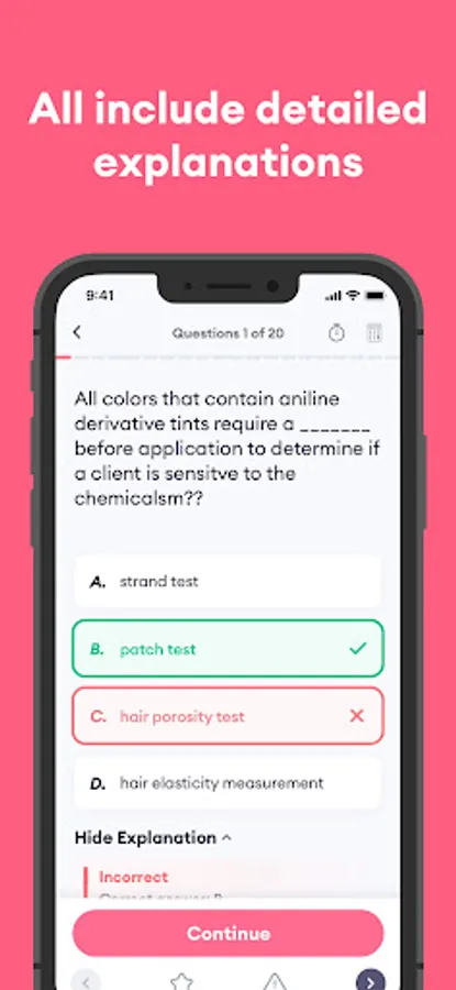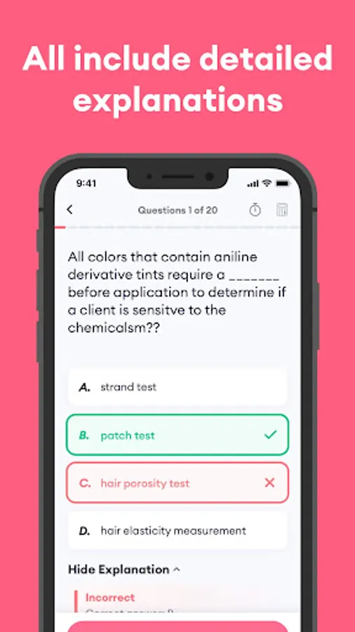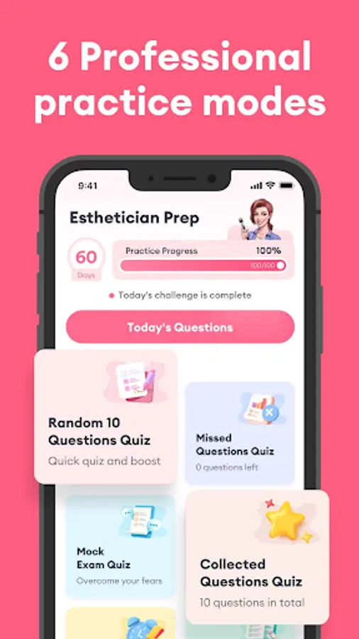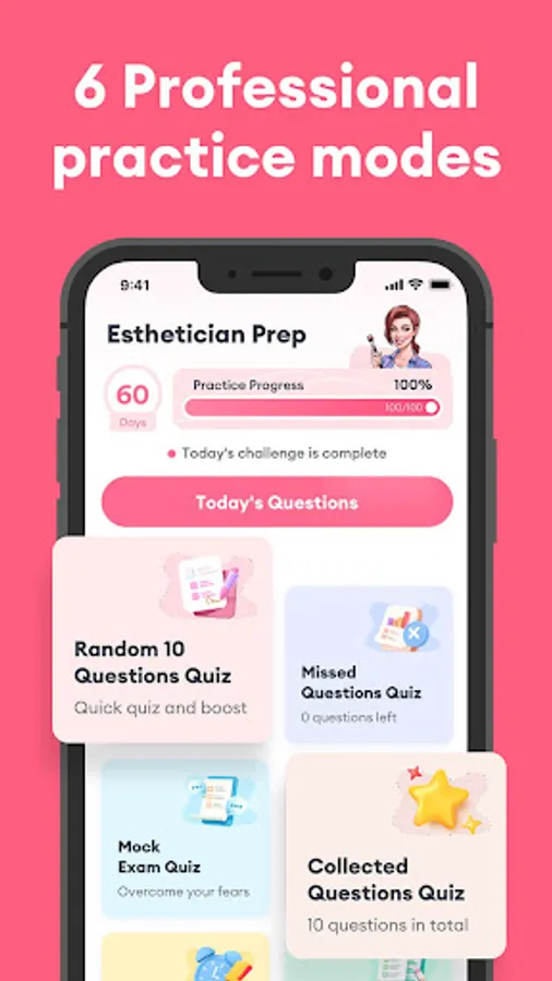Esthetician Exam Practice 2023 is an application carefully designed and developed by industry test experts. With over 900 high-quality questions and answers, multiple test modes, and a scientific analysis system, it helps you practice anytime, anywhere, making it more likely that you'll pass the Esthetician licensing exam in one sitting!