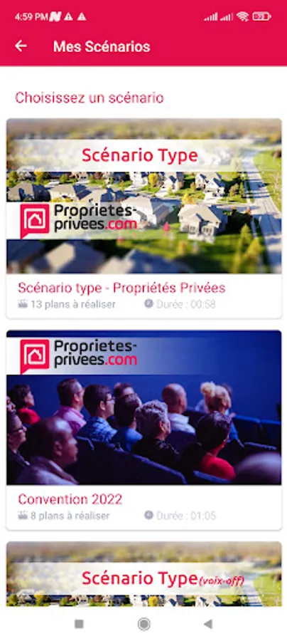 Individual or professional, simply make quality films by letting yourself be guided by our scenarios (visit of a property, interview, event...), iZivisite allows you to edit your video in just a few minutes and to keep a logic and an editing sequence worthy of a professional thanks to the scenarios. Everything is done with the click of a finger!