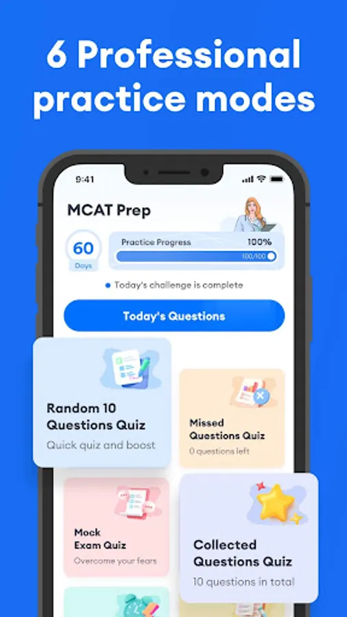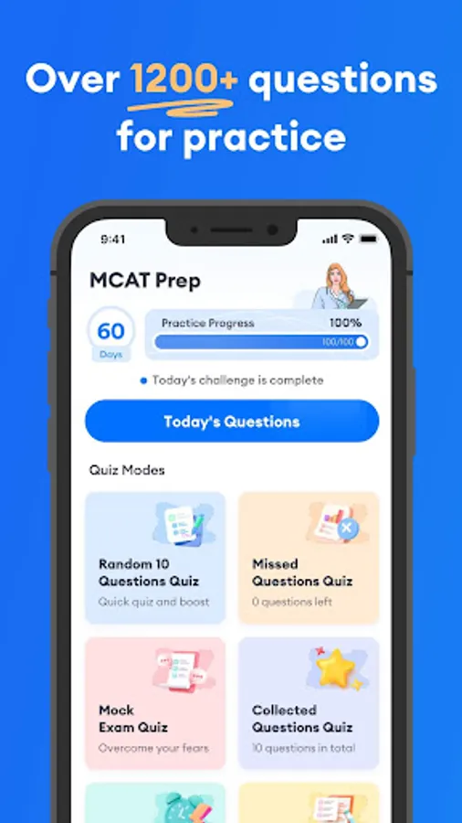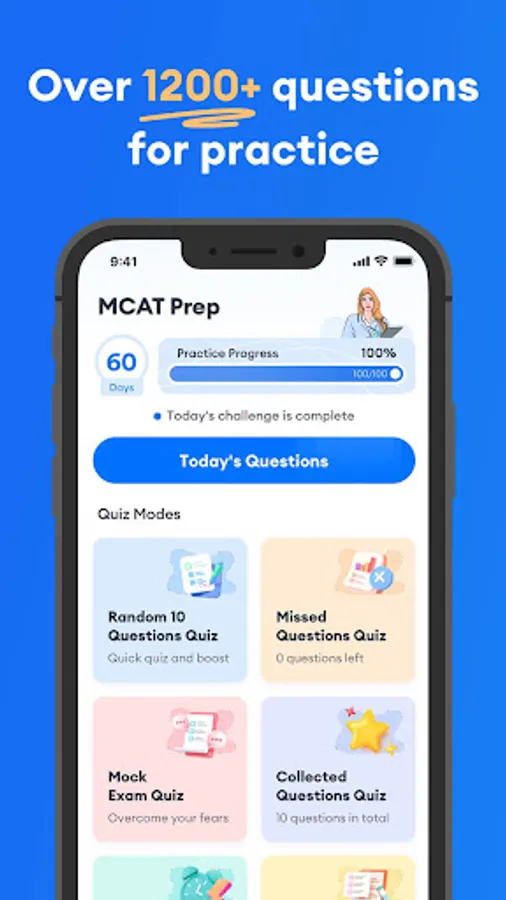 MCAT Test Prep 2023 is an application that has been carefully designed and developed by industry exam experts. It has more than 1,200 high-quality test questions with answer explanations, multiple test modes and a scientific analysis system to help you practice efficiently anytime, anywhere and give you a better chance of passing the MCAT exam on the first try!