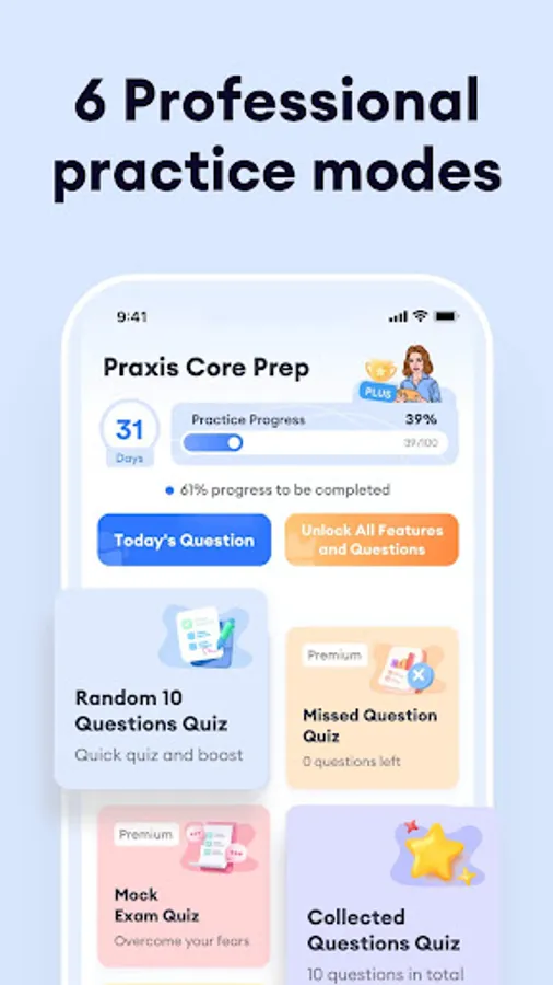 Praxis Test Prep 2023 is an application that has been carefully designed and developed by industry exam experts. It has over 1400 high quality questions with answer explanations, multiple exam modes and a scientific analysis system to help you practice efficiently anytime, anywhere, giving you a better chance of passing your Praxis certification exam on the first try!