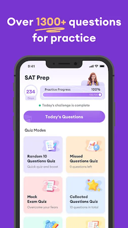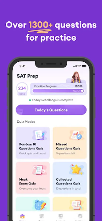 SAT Test Prep 2023 is an application carefully designed and developed by test experts in the industry. With more than 1,300 high-quality questions and answers, multiple test modes, and a scientific analysis system, it helps you practice anytime, anywhere, so you're more likely to pass the SAT on your first try!