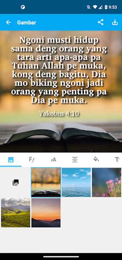 - Use the Edit Image function to create and share beautiful and attractive Bible Verse images with friends and family.