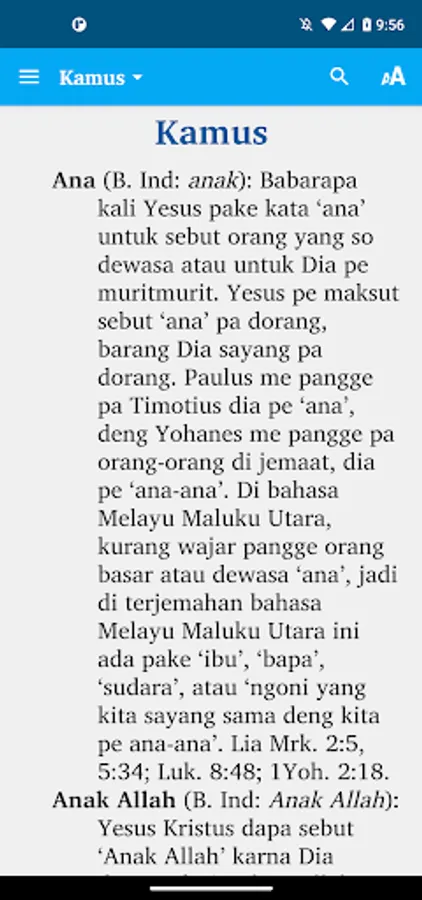 This North Maluku Malay Bible application is for reading and also listening to the Word of God