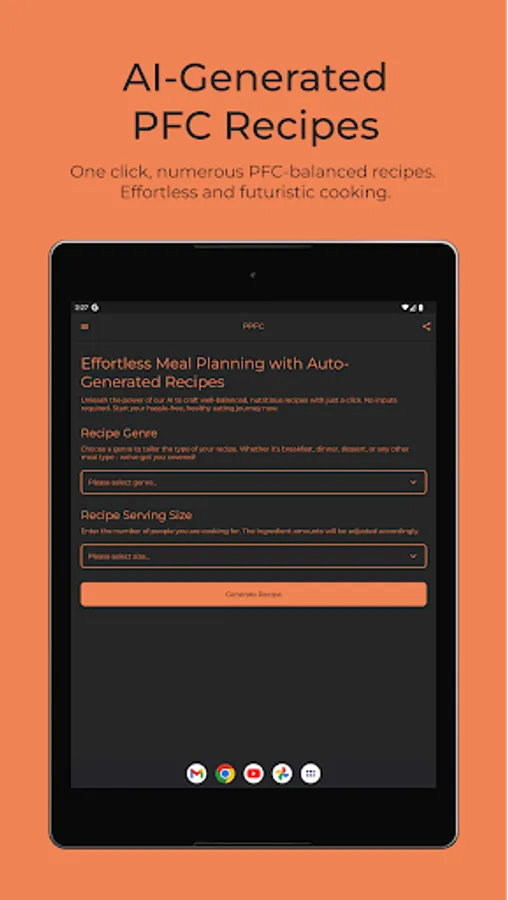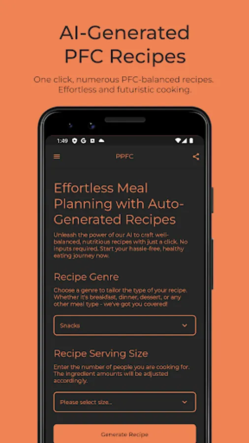 Say goodbye to the stress of meal planning. PPFC simplifies your life by generating PFC-balanced recipes tailored to your taste and dietary preferences. Whether you're trying to lose weight, gain muscle, or simply maintain a healthy lifestyle, PPFC is your trusted companion on this journey.