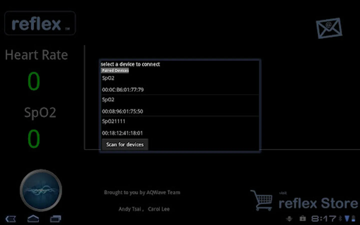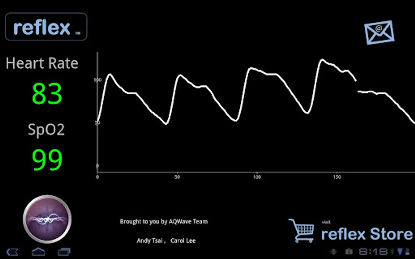 AQWave Basic is designed to support the use of ReFleX PPG Recorder. Currently the software operates in Android environment and only supports data display function. Future releases will include more funcitionalities such as real-time recording and various data analysis.