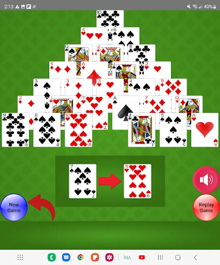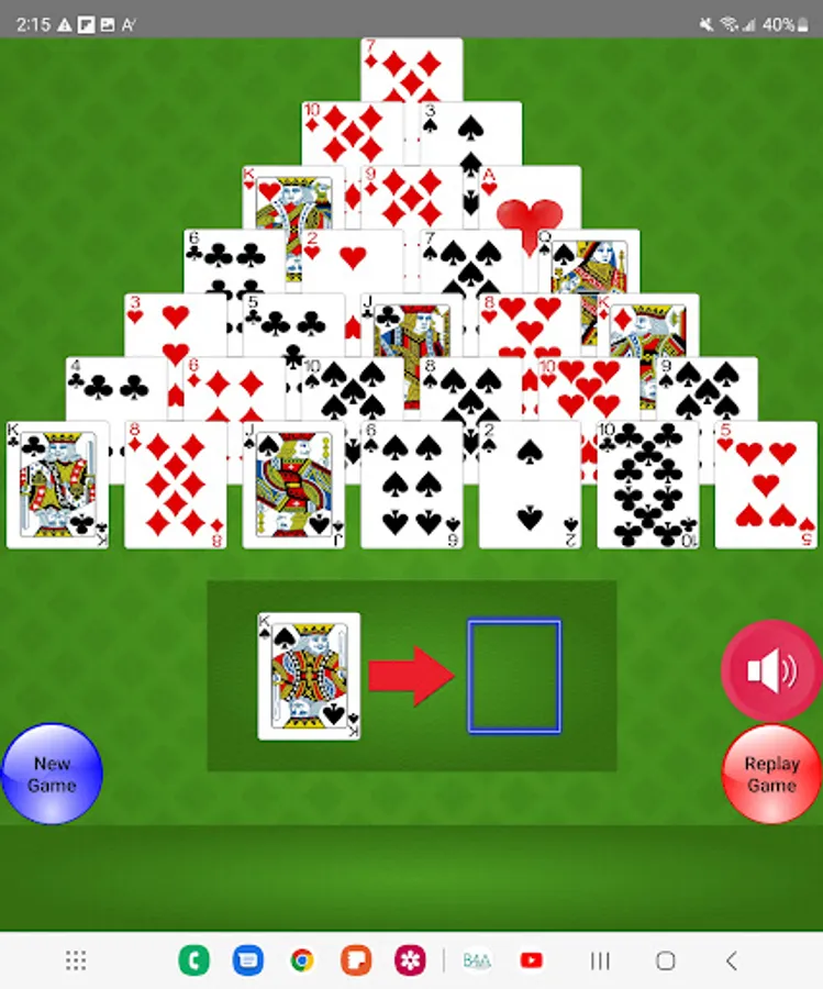 Would you like a Solitaire game with a slight amount of math included for good measure? Can you count to 13? Pyramid Solitaire is the game for you. The objective Pyramid Solitaire is to get rid of all of the cards in the card Pyramid. To get rid of the cards you have to select cards whose value equals 13. For example: a 6 and a 7, 2 and Jack, Ace and Queen. The King is 13 by itself so you only have to select one King to get rid of it. Pyramid Solitaire is a Solitaire game played with a 52 card deck set up in a triangle. You must match the accessible cards to get to the cards under it.