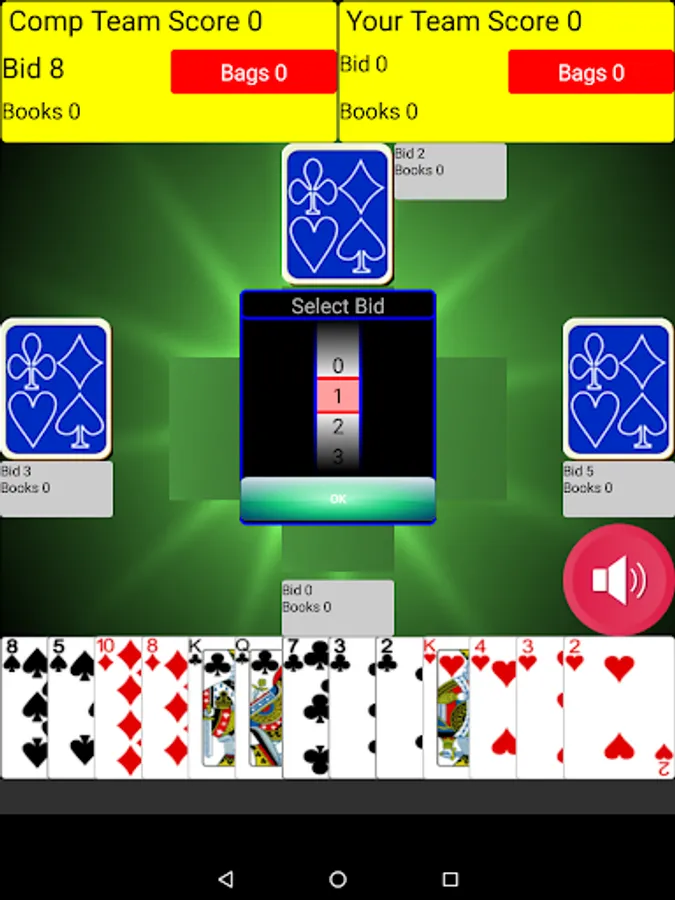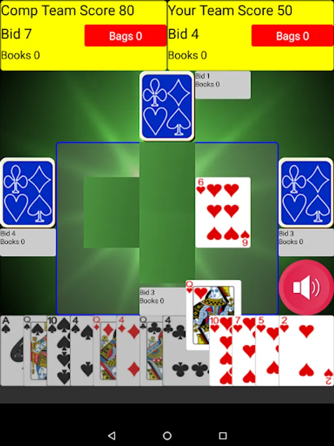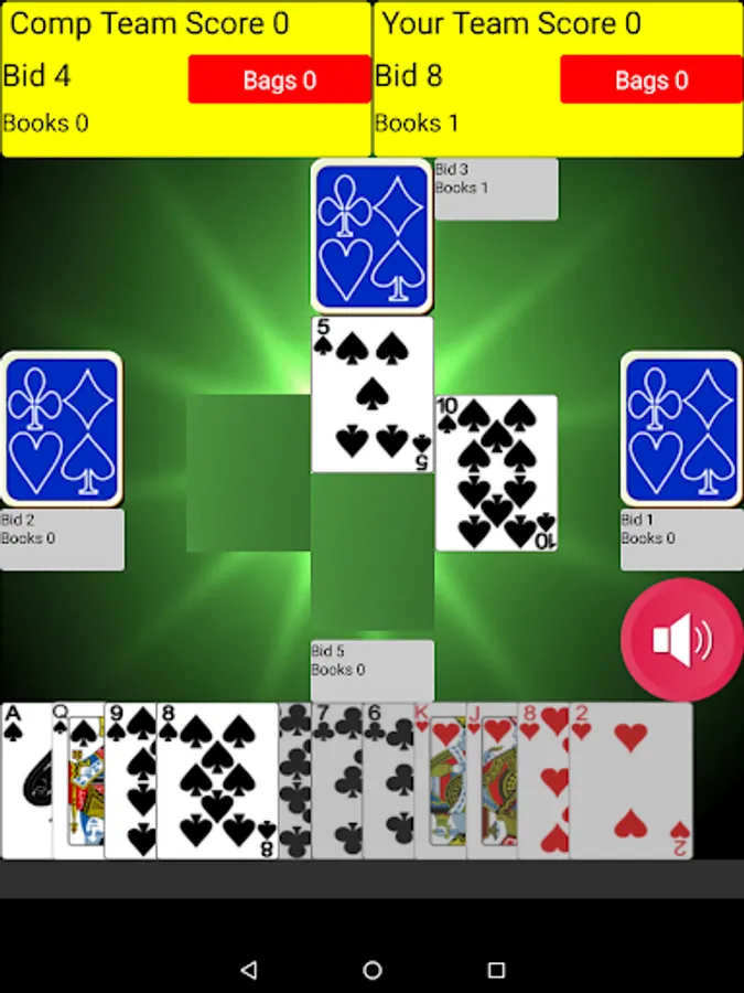 Play this Spades card game with all of the trimmings. This games includes all parts of Spades from: Nil Bids, Bags, Blind Bids and all. The option to include Jokers is there also. Enjoy this game in your down time and you won't be disappointed.