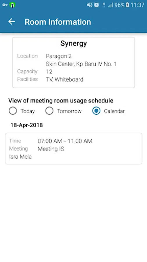 Ini adalah aplikasi untuk booking ruang meeting di PT Paragon Technology Innovation. User dapat mengetahui fasilitas untuk setiap ruang meeting dan membatalkan ruang meeting yang telah dibooking karena alasan tertentu.