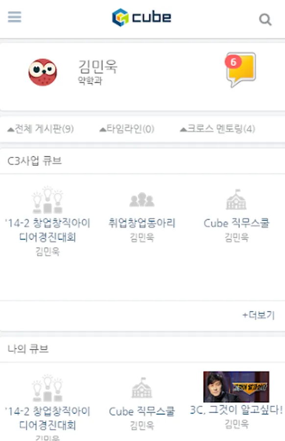 Gcube는 가천대 바이오융합사업단에서 운영하는 교수학습 플랫폼으로 미래산업에 꼭 필요한 3C(융합 Convergence, 도전 Challenge, 협력 Collaboration)역량을 가진 인재를 양성하기 위한 다양한 교육과 사업을 운영하는 시스템입니다.