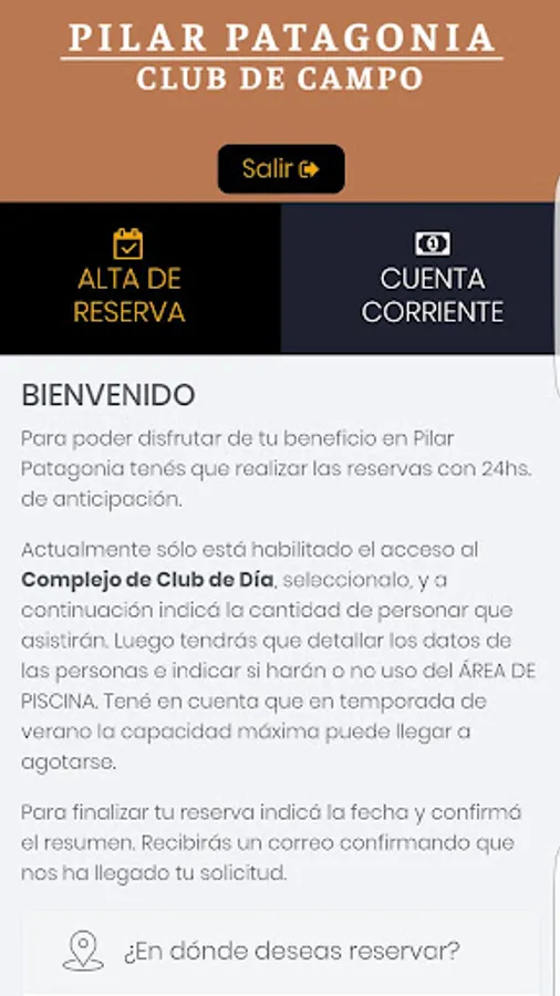 Reservation system for the Pilar Patagonia complex. Partners of the D.A.C. (Argentine Cinematographic Directors).