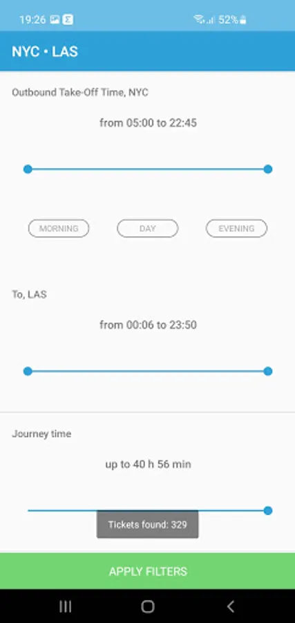 In this application you can fulfill the search of air tickets online among 728 airlines all over the world. Thus, you can not only compare prices and choose the cheapest but to consider several variants of flight. Our search is convenient for students who make a choice based, primarily, on the cost of the tickets and for people who value their time and prefer to fly with a comfort.