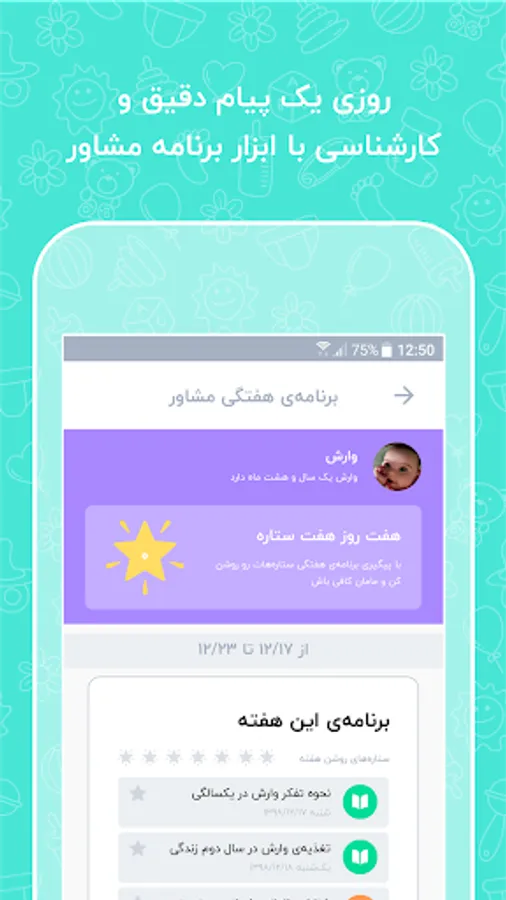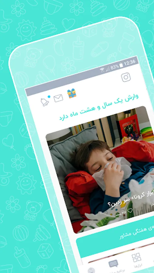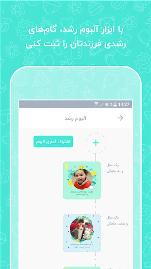 The cradle has been prepared for pregnancy and child up to six years and comes with various tools in the areas of sleep (baby lullaby), nutrition (pregnant mother and baby nutrition) and play (baby play and toys suitable for any age) and growth album (For full registration of baby growth) and other tools to help mothers during pregnancy and child training.