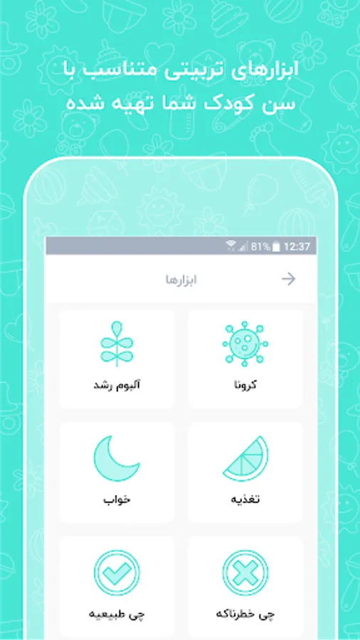 Game Tools: To develop a happy and healthy child, you need to understand his or her language and recognize the child's play appropriate to the age of your child. In the Cradle Tool you can get to know the toys appropriate to the child's age and play with them.