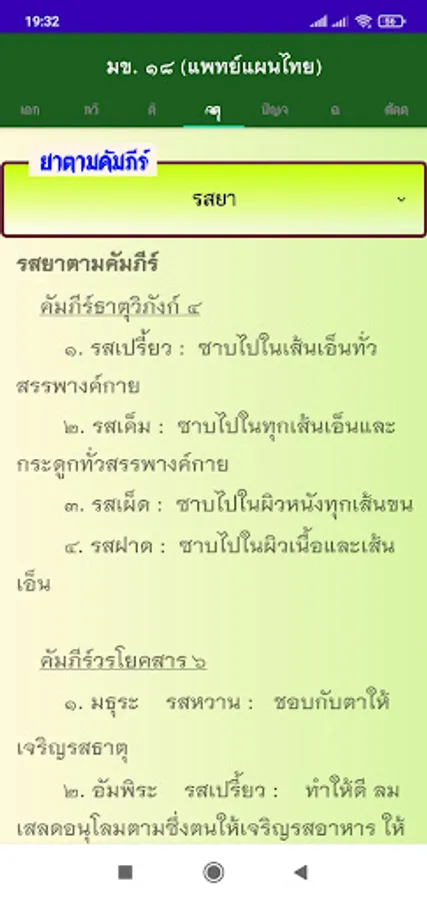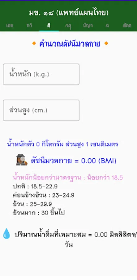 In addition, there is a display page for calculating body mass index, BMI (for ease of clinical practice) and a drug recipe page according to the Thai traditional medicine scriptures, which are extracted from the textbooks of general traditional medicine, Department of Medicine, Volume 1 and Volume 2 of the Division. Practicing the art of healing Department of Health Service Support (to apply or reviewing memory or used in the exam)