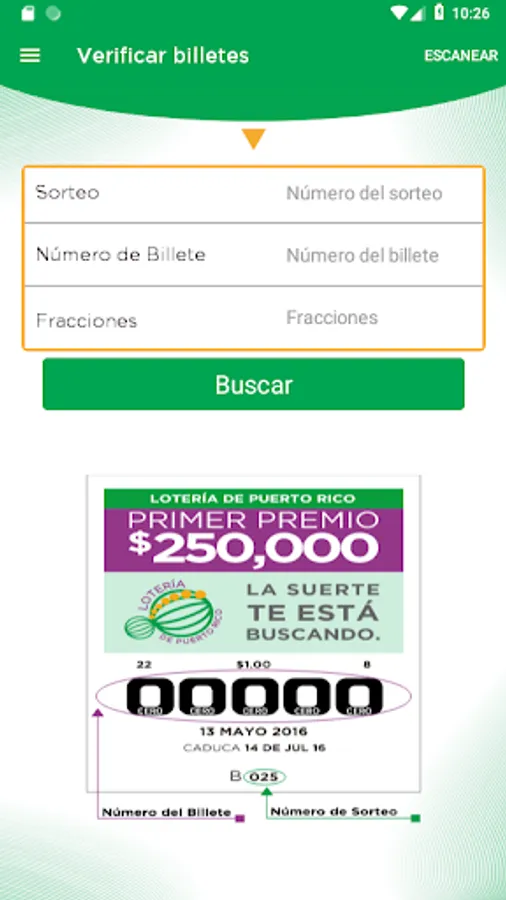 Mobile application for the Traditional Lottery of Puerto Rico, where the participants of the draws made can enter to validate the winning numbers of the last 180 days and identify the registered exchange centers.