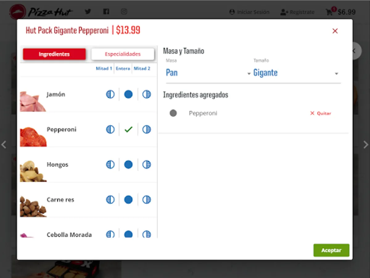 2. Choose any option from the Pizza Hut menu and customize it however you want.