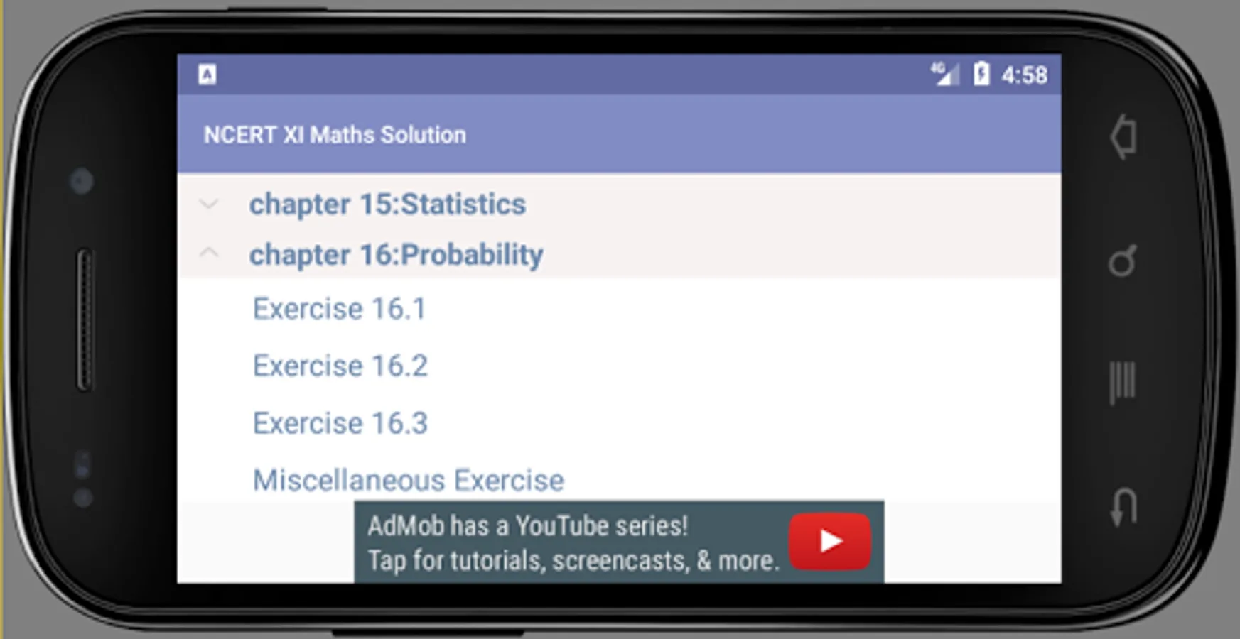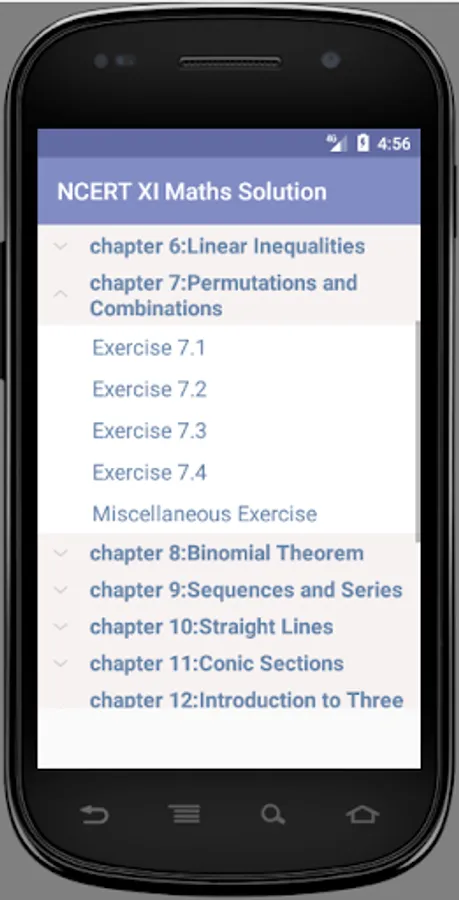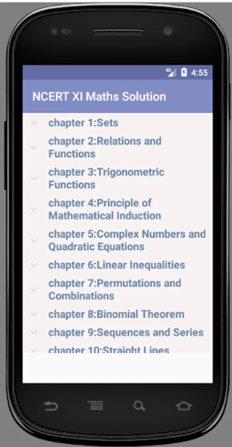 Detailed NCERT CLASS 11 Maths SOLUTIONS. This app works without internet connection also. It include Chapter wise easy to navigate menu with each and every NCERT Solutions.