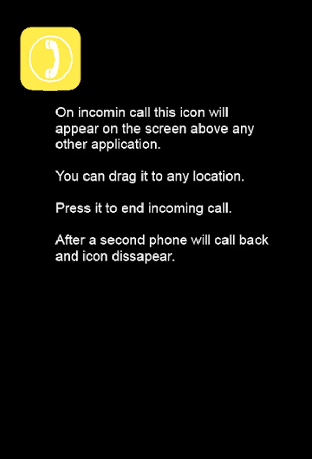 * Drag CALL BACK button to desired location. You can move this button anywhere on the screen - in the centre or at the margin of the screen. Program will save your location.