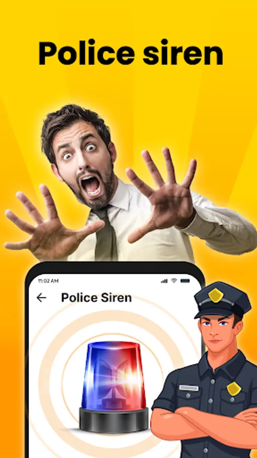 After haircut prank, the next prank is police siren. This one is sure to get people's attention, and perhaps even cause a bit of panic. Just grab the attention and prank your friends with this amazing app. Police siren sounds are enough to make someone fool. Prank app offline has five different tones of a police siren.