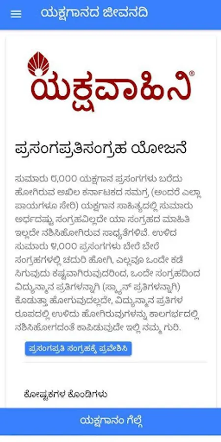 In-order to preserve the Yakshagana prasanga books in digital form so that they can be available permanently, this project is working with the help of volunteers to Scan and upload the copies online to be made available to artiste, students , researchers , historians and party who would be interested.