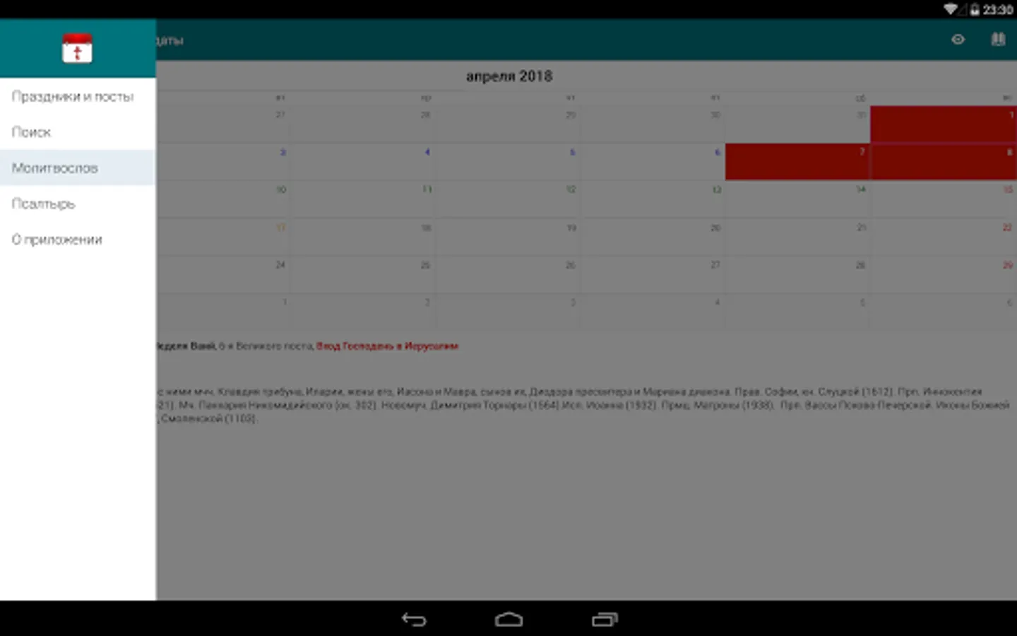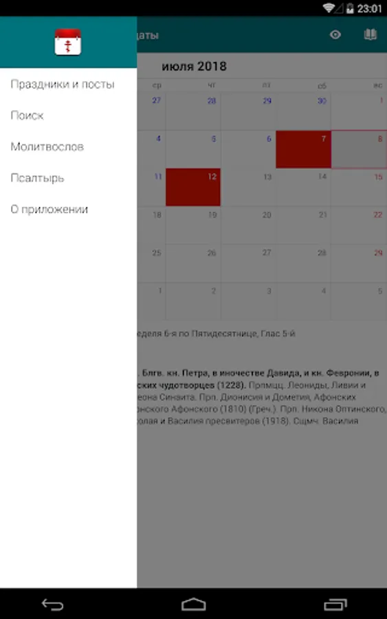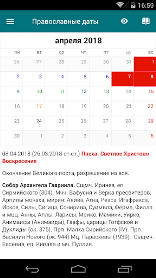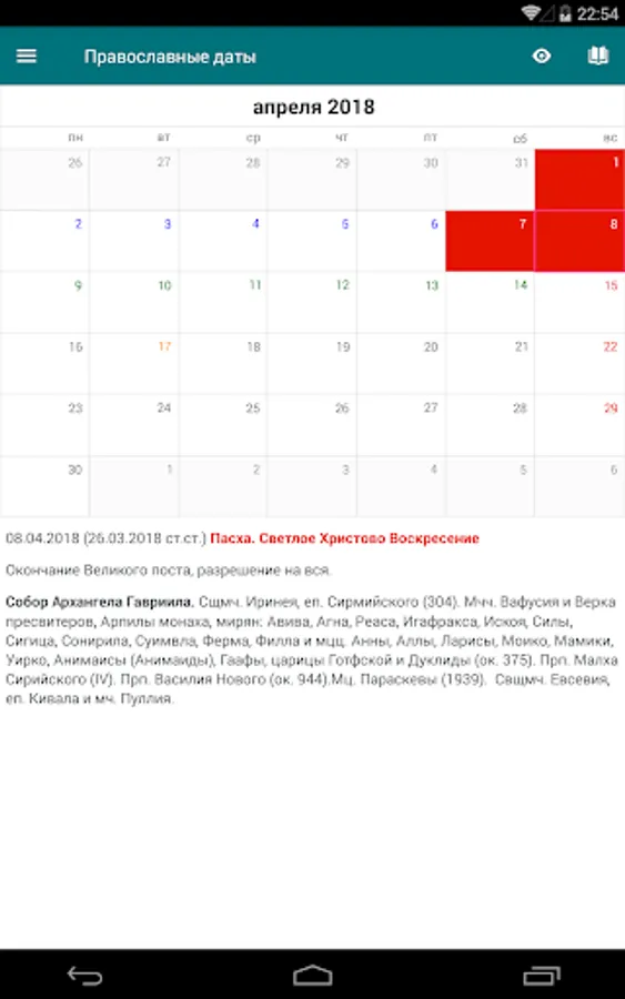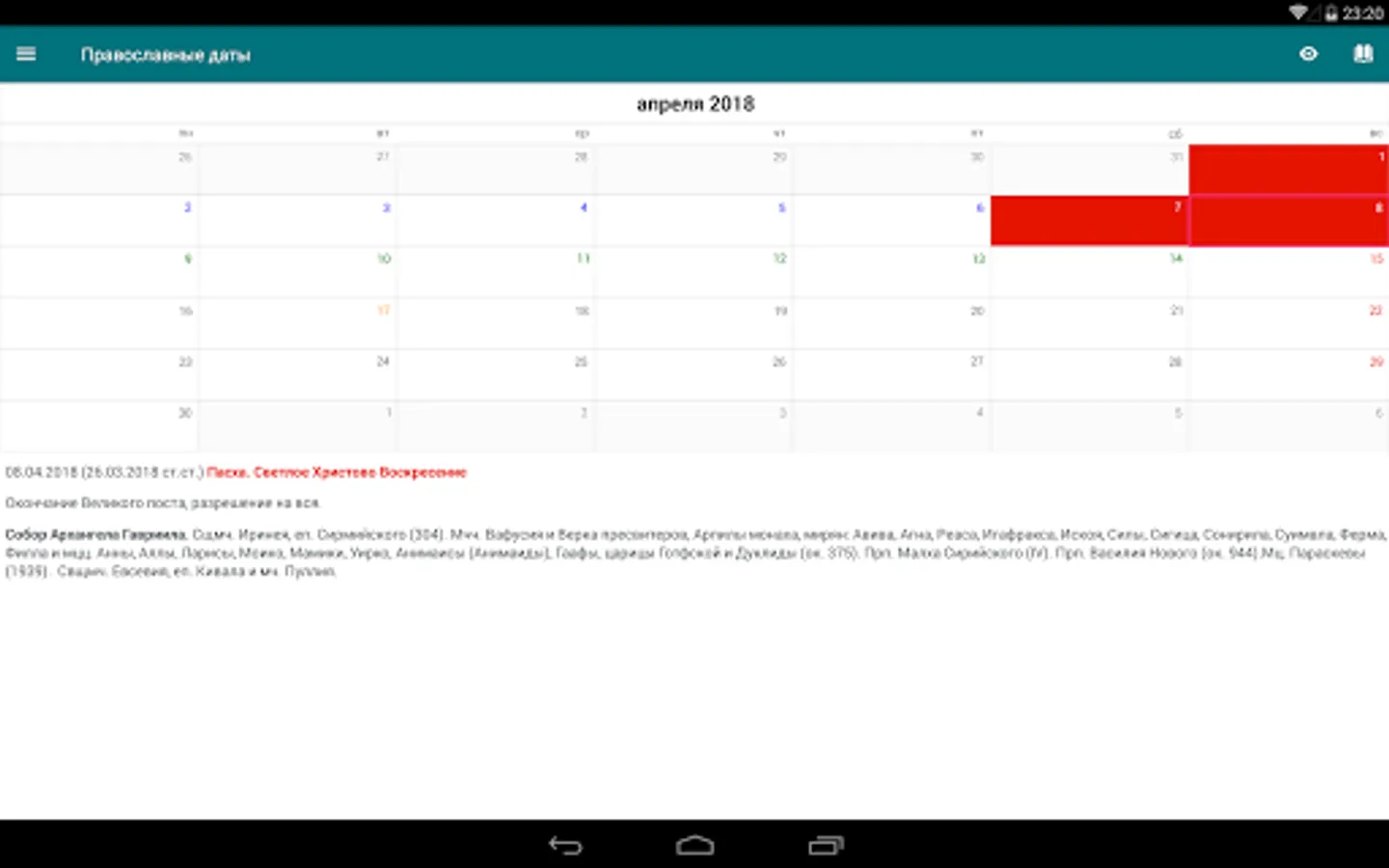 - In the calendar grid, great and twelve-year holidays, many-day fasts, days of special commemoration of the dead and continuous weeks are marked;
