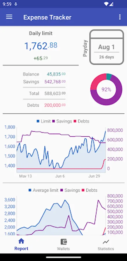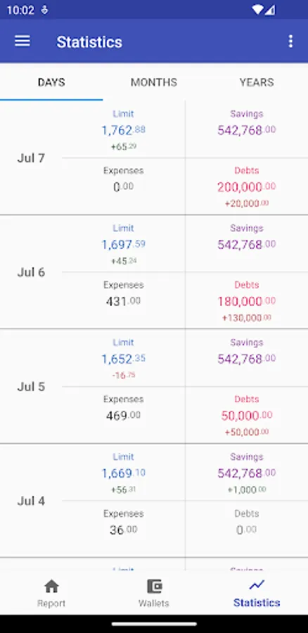 With a decrease in the balance the limit also decreases, the next day it is recalculated again as your salary day comes closer. Once a day (or more often) adjust your balance and analyze the result. When your limit falls for several days in a row you have reached a critical point: you live beyond your means.