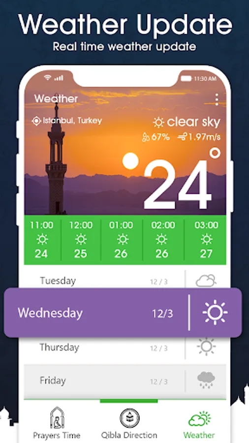 Islamic prayers time and azan app is a weather forecasting system too to look around and make plans to go out with some safety steps.