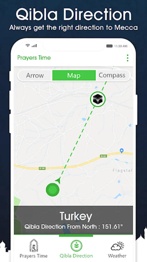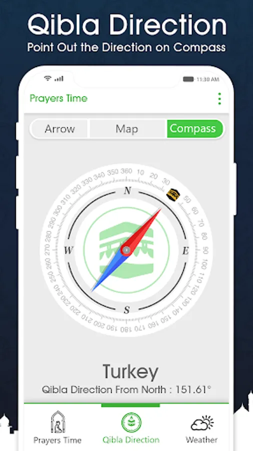 Salat time Qibla locator that allocates accurate Qibla to offer نمازin right direction at any place. Namaz time watch shows Qibla compass and directional guidance for prayer as like a mosque.