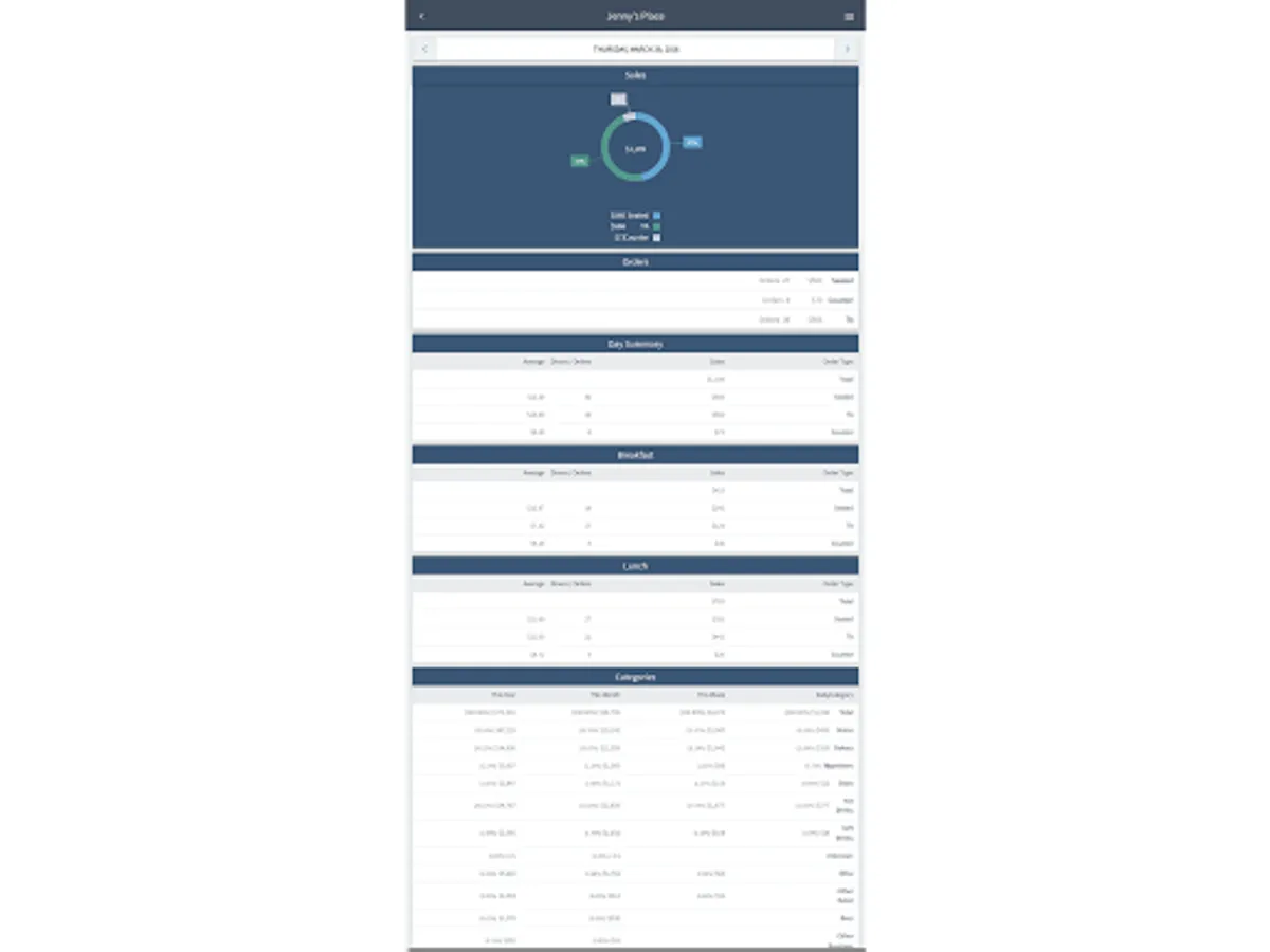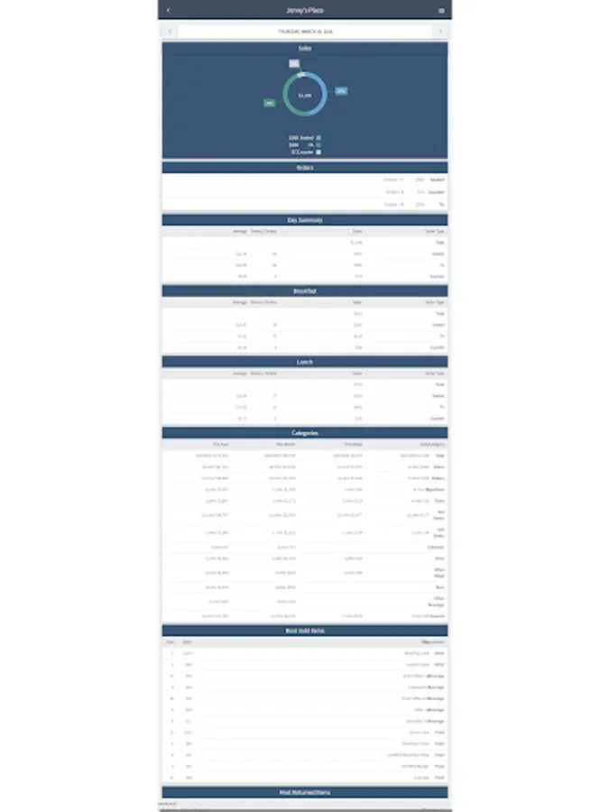 View today’s sales comparison to past dates, compare between months and years. View performance ranking and projected forecast for current month.