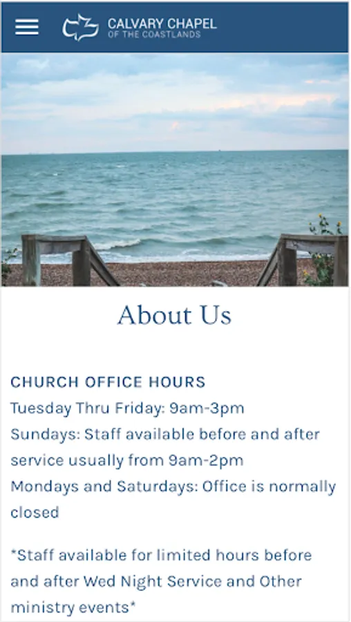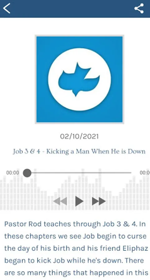 Download current messages for offline listening as well as share messages with others. Join our app community for event information and functionality. Receive push notifications with important information.