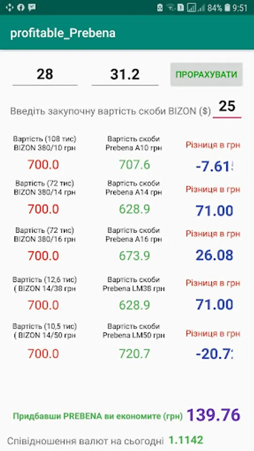 The program instantly calculates the profitability of purchasing the same product Bizon or Prebena and shows who is cheaper at the moment and for what amount
