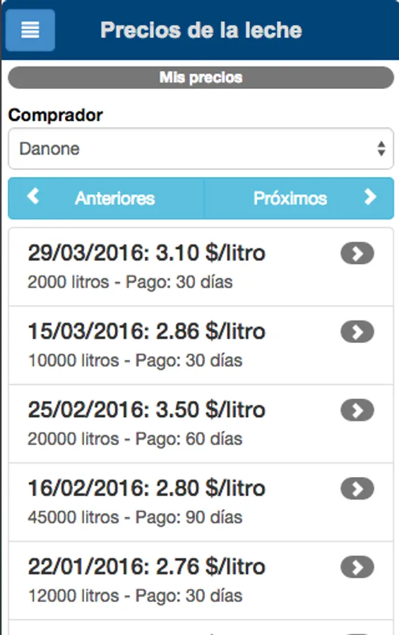 Prices of milk is a free mobile application for dairy farmers share the values obtained from the different industries in Argentina.