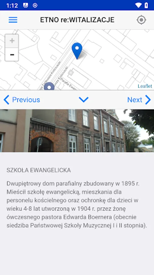 A two-story parish house built in 1895. It housed an Evangelical school, flats for church staff and an orphanage for children aged 4-8, established in 1904 by the wife of the then pastor Edward Boerner (now the seat of the 1st and 2nd degree State Music School).