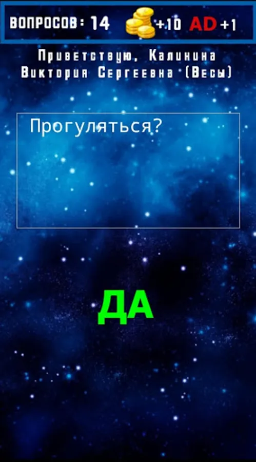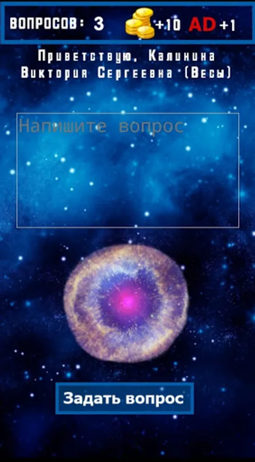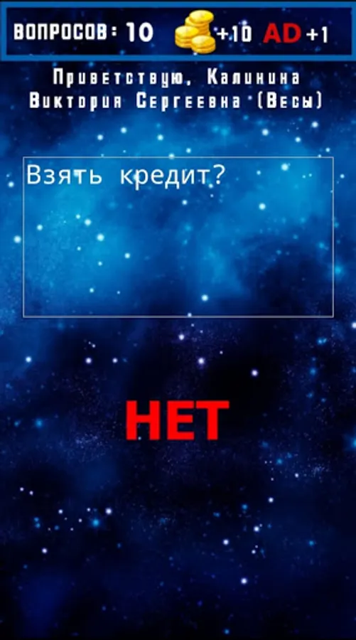 “Predictor” uses algorithms for searching and substituting ligaments of full name and zodiac sign (through the general rules of numerology), recalculates with weighted (by keywords) question parameters and gives the result.