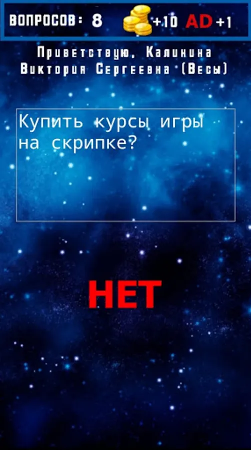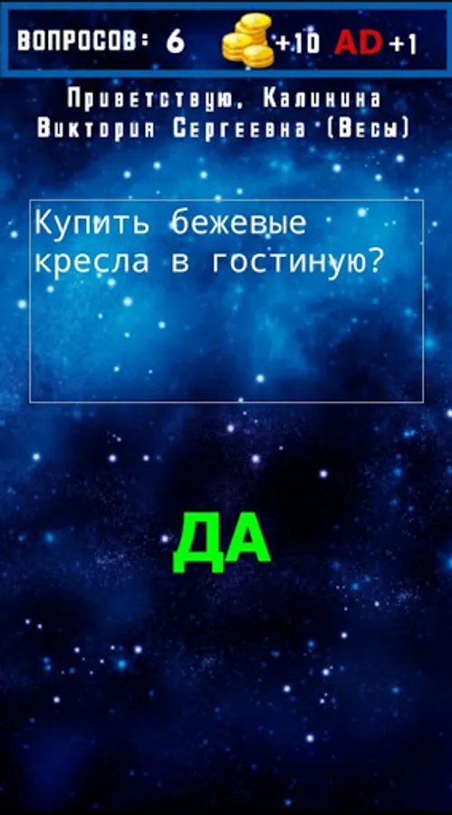 The accuracy of the prediction directly depends on the correctness of entering the full name and zodiac sign;