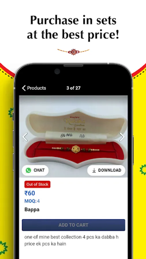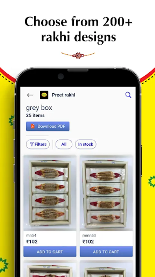 We deals in all kind of goods related to rakhi wholesaler as well as manufacturers and we also do exports as well as Kids rakhi dori rakhi cotton thread rakhi fancy rakhi ad stone rakhi as well as we deals in all kind of soans roli chawal platters.