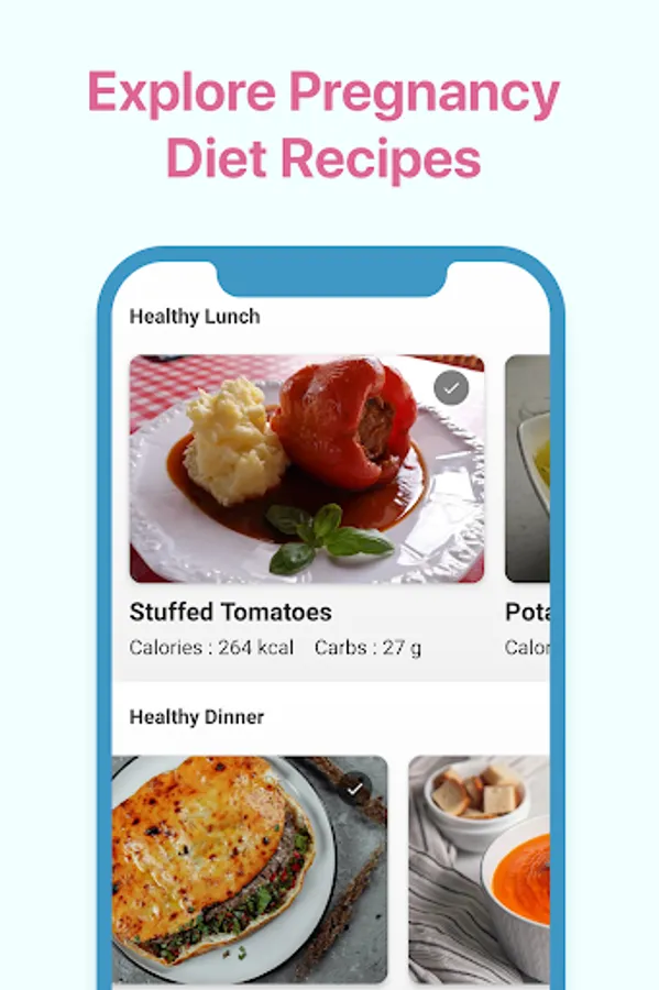 Healthy pregnancy app plans a healthy diet for pregnant mom suitable for breakfast, lunch, dinner, and snack recipes. It also has pregnant food recipes as you get in the pregnancy books free with a pregnancy diet tracker.
