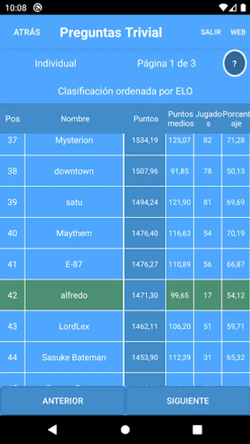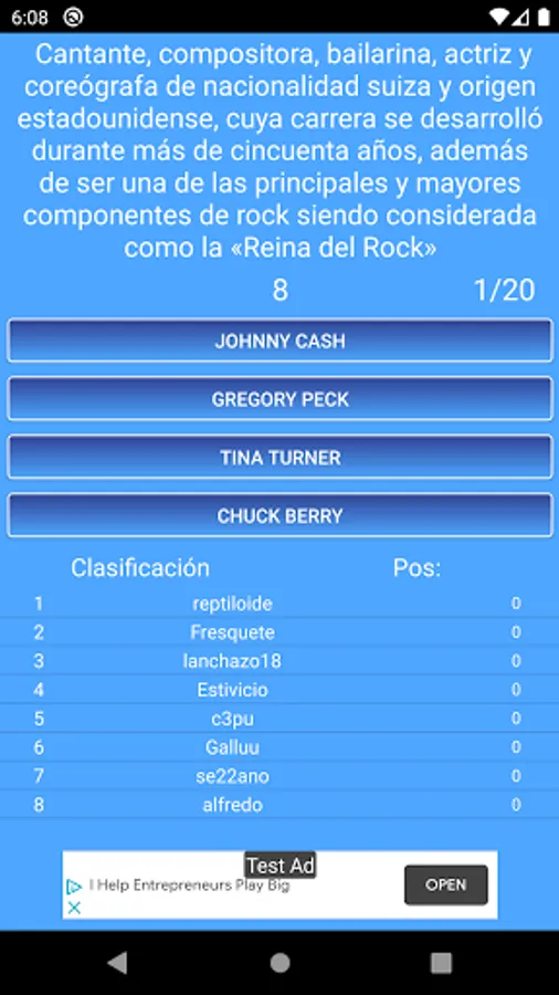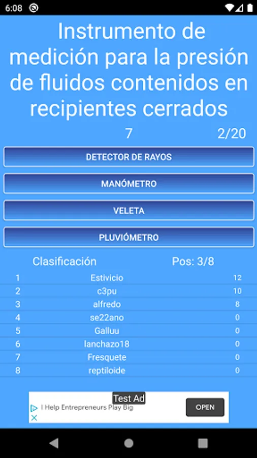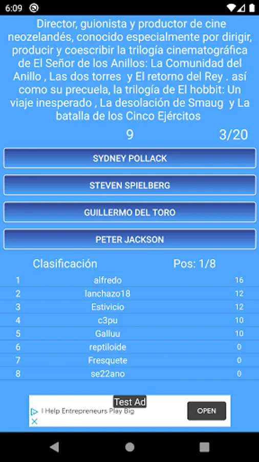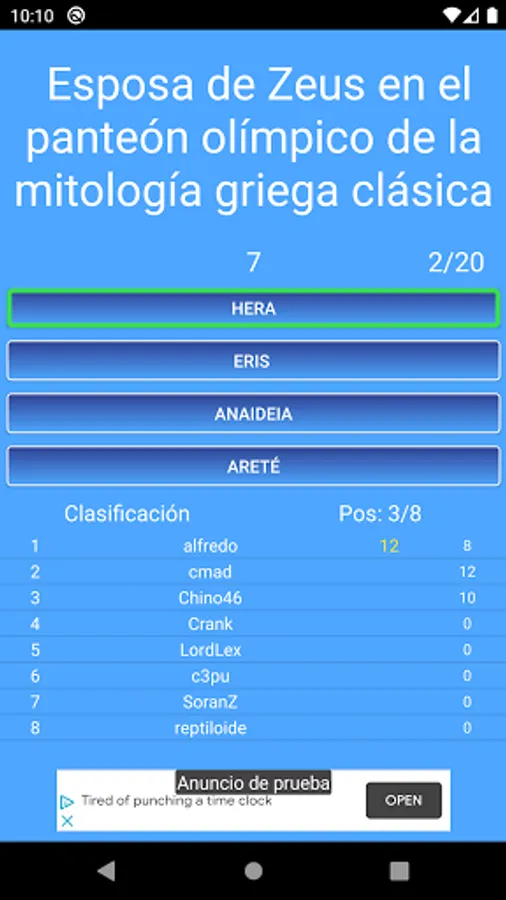 For each of the questions, there are 4 possible options, of which only one is correct. The user has between 10 and 15 seconds to answer the question and receives a higher score if he answers faster than the rest of the users.