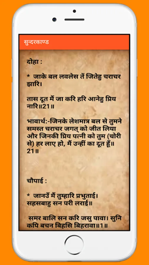 “SundarKand” (सुन्दर काण्ड) is the 5th chapter (Kand) of Shri Ram Charit Manas written by Valmiki Ji in Sanskrit. Later on, Tulsidas Ji translated into Awadhi language. He went to Lanka to search Mata Sita and this entire journey is described in – “SundarKand”