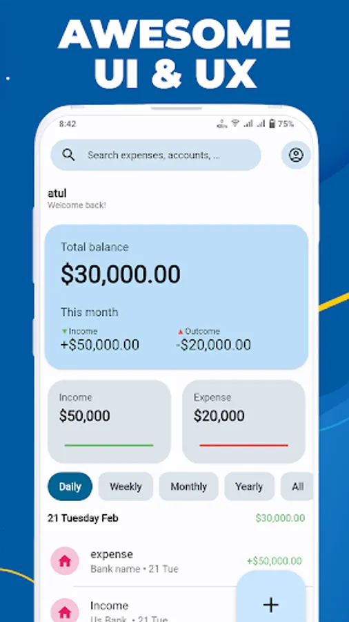 The Money Expense App also allows you to filter your financial records by daily, weekly, monthly, and yearly time periods. This means that you can easily see how much money you're spending or earning during a specific time period, and even compare your financial records across different time periods. This feature can be particularly useful if you want to track your progress towards a financial goal, such as saving a certain amount of money each month.