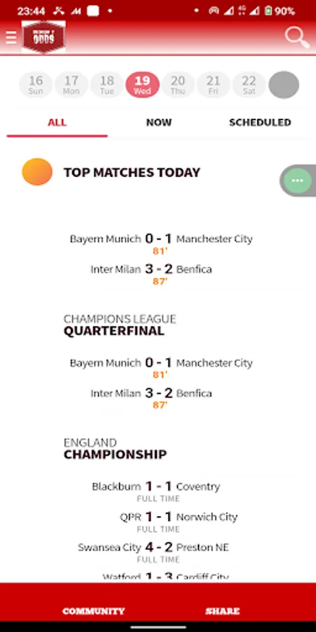 App contains "Live score section" where you will have the result updates of every game if you are away from TV.