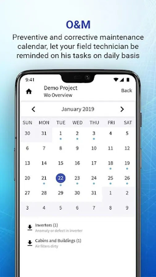India’s first mobile app for Solar Plant Monitoring coupled with O&M Automation. Be updated on your solar plant performance on the go. Enhance the productivity of field technicians by allowing them to assign task & create work orders in offline mode. Eliminate the time spent on hard copy management and documentation.