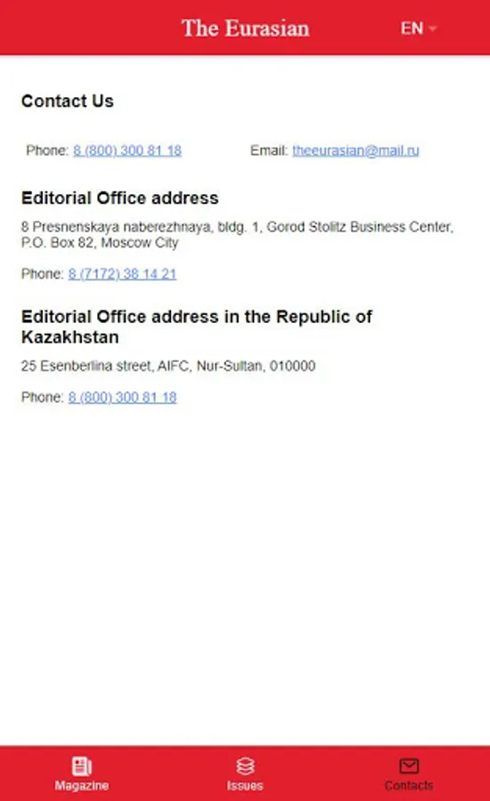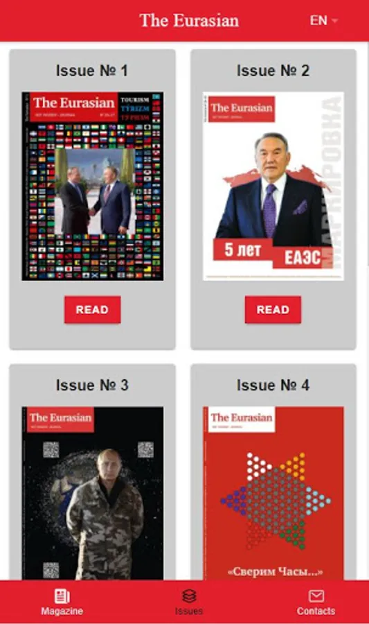 Приложение позволяющее просматривать все выпуски журнала The Eurasian.