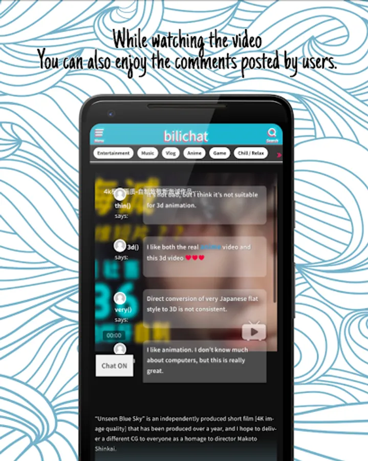 It curates popular Bilibili videos and allows you to become a user and post chats freely.